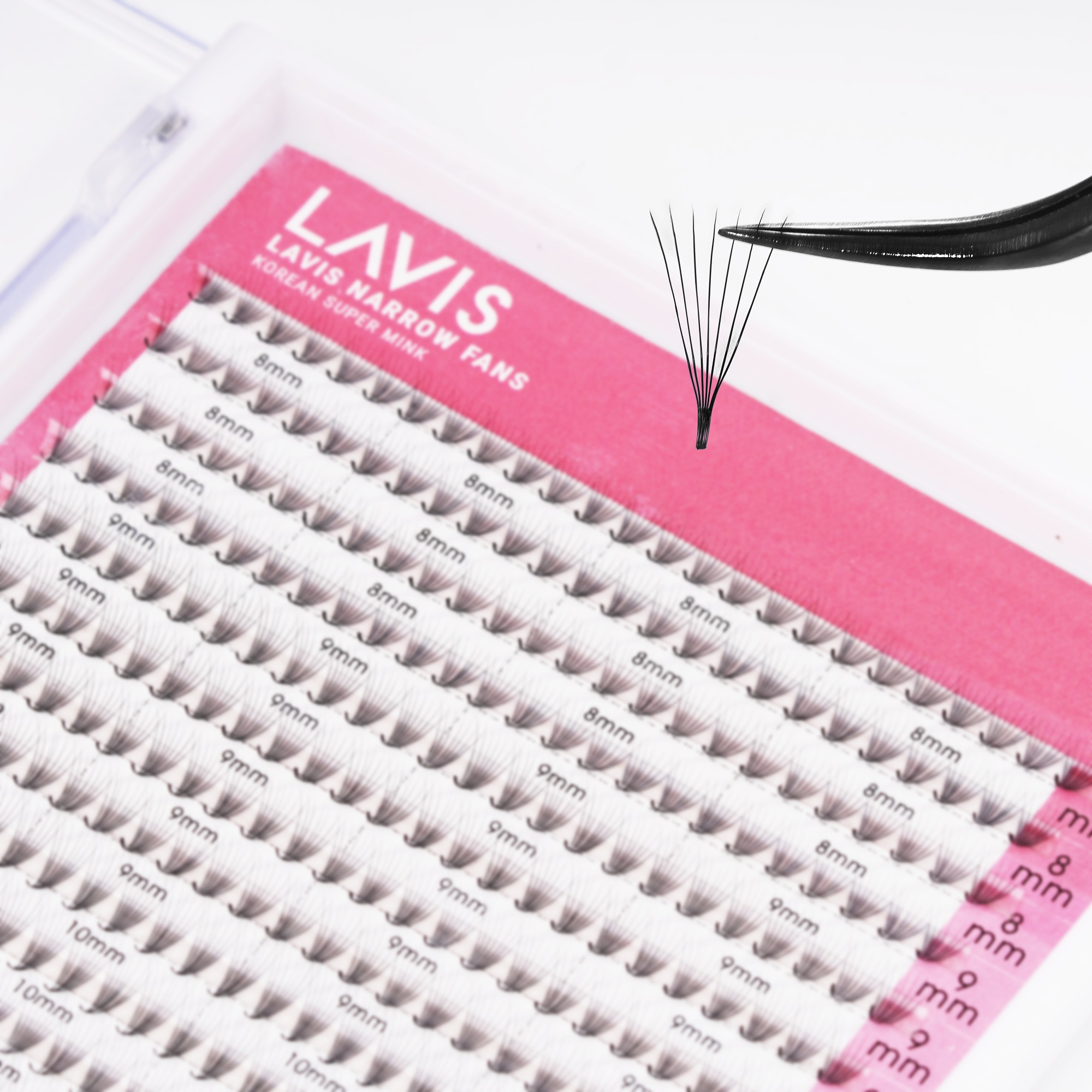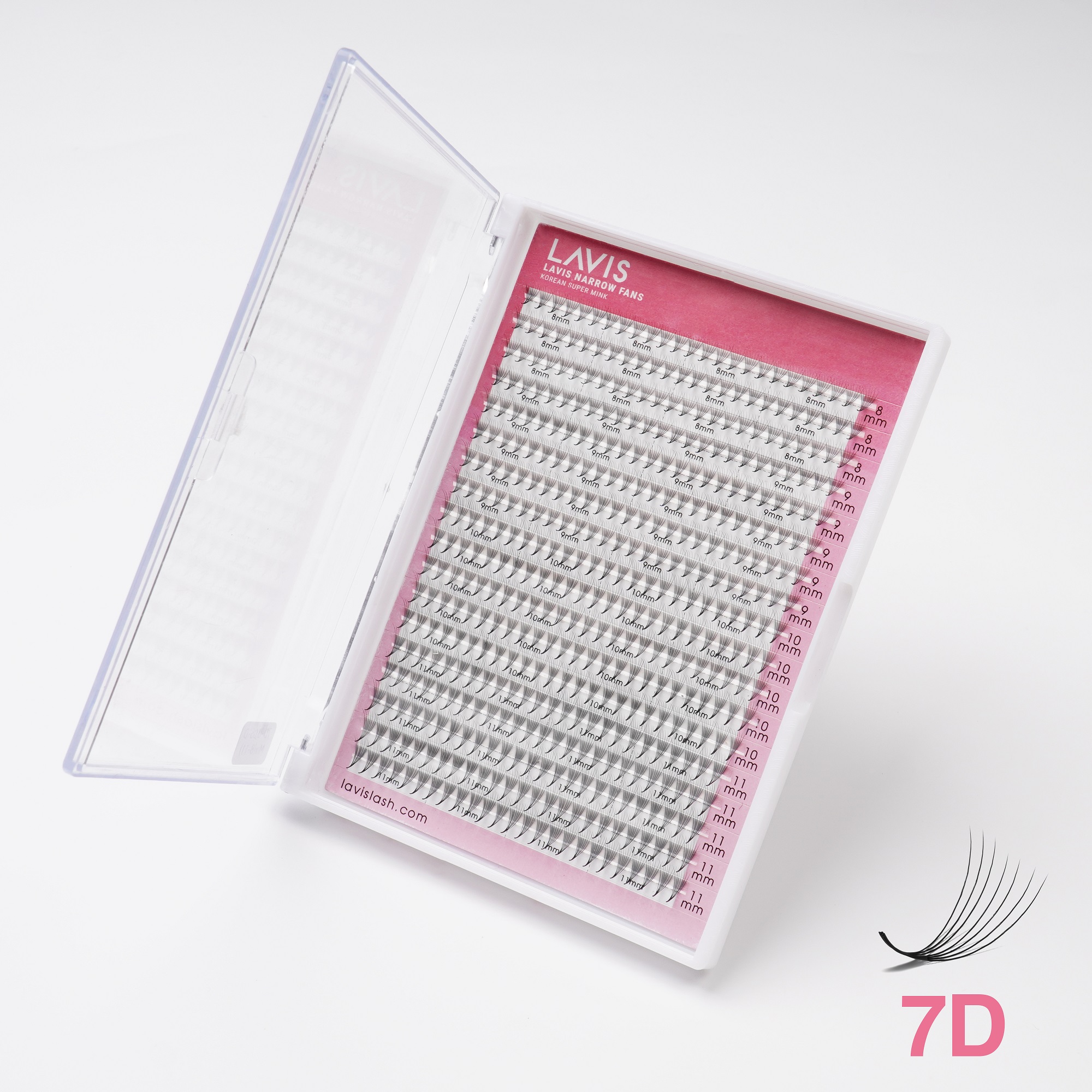 LAVISLASH 7D Narrow Medium Trays Single Length | 450 FANS | C CC D Curl | Promade Natural Fans Eyelashes Extensions 0.07 Thickness of Mink Lashes.