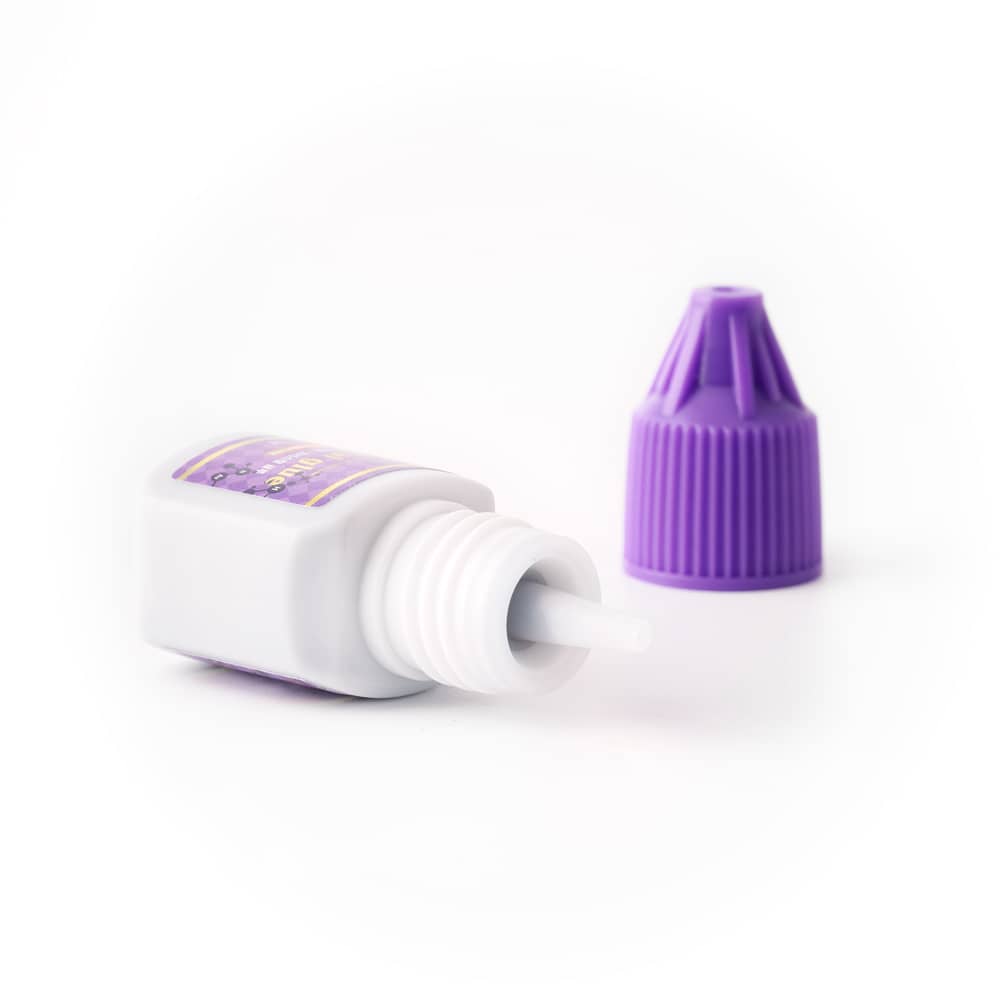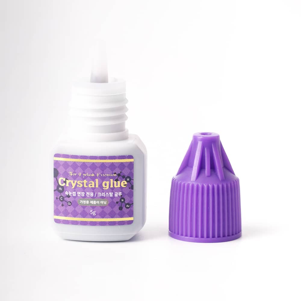 Crystal Purple Eyelash Extension Glue: Drying time 1-2s (Suitable for beginners, sensitive eyes, and mild irritation). Bond duration 7-8 weeks. Highly compatible for volume lashes and black rose lashes.