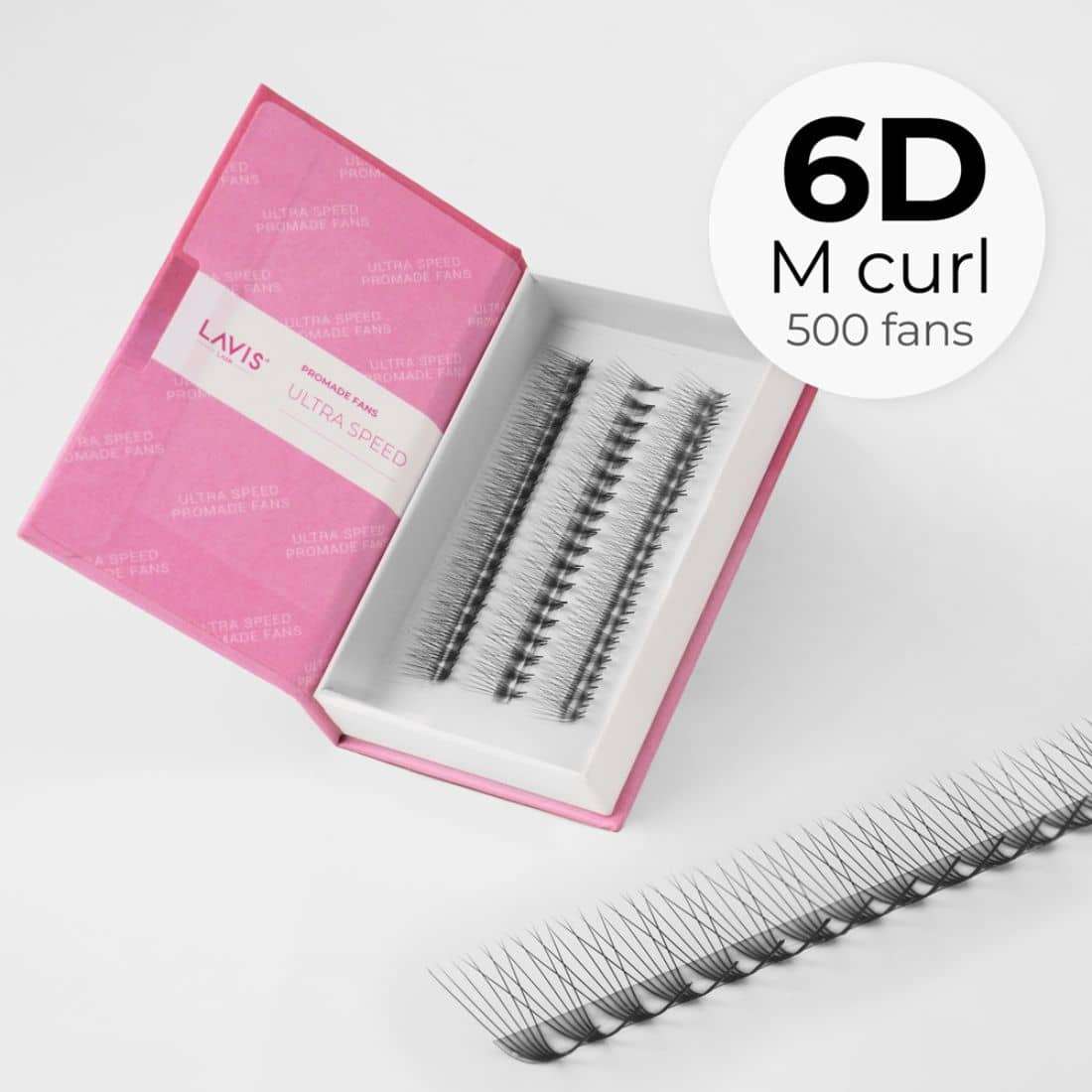 6D M-Curl Ultra-speed Promade 500 fans Paper box LAVISLASH Promade Natural Fans Eyelashes Extensions | Handmade Individual Lashes | 8-16mm | 0.07 Thickness of Mink Lashes.